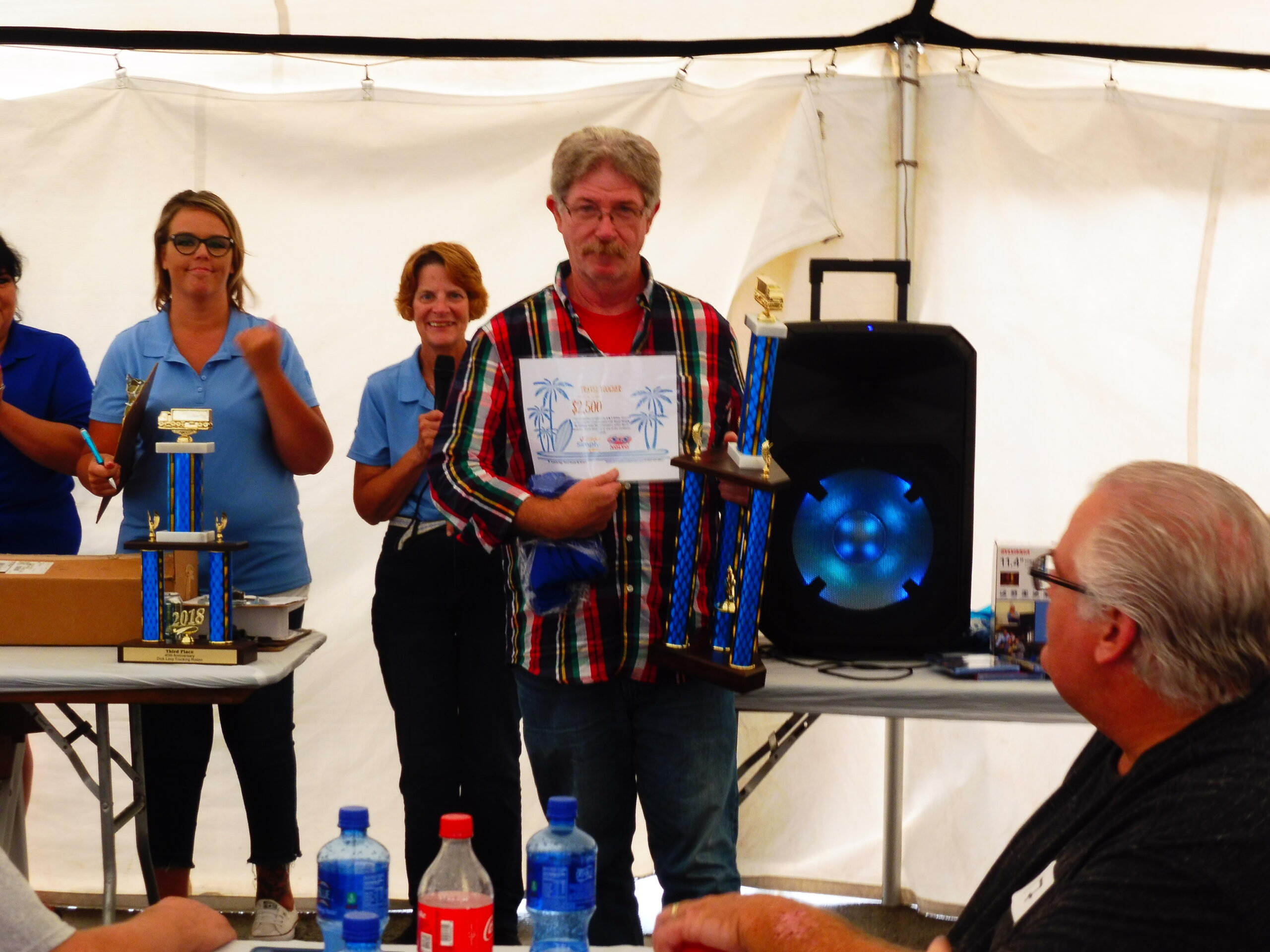 This year we are celebrating our 40th Anniversary! There was something for everyone at our annual rodeo and picnic with our driver simulator, kids games, prizes, food and ice cream. We were particularly excited to present our top rodeo winner, Gary Jeffers with a $2,500 travel voucher donated by our friends at S&S Volvo. Nathan Wilson came in second place and Mike Brown came in third place. They both had first pick of all of our fabulous prizes.